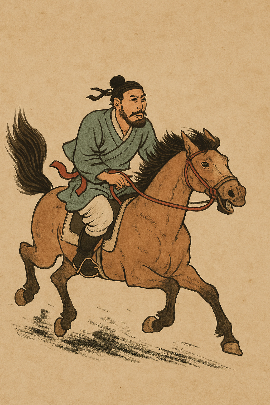 챗 GPT에게 역마의 활동성을 잘 나타내는 그림을 그려보라고 시켰더니… 이런 옛스러운 그림을 보여주네요 ㅎㅎ 너무 빨리 달리다가 눈에 흙먼지가 들어갔나 봅니다.