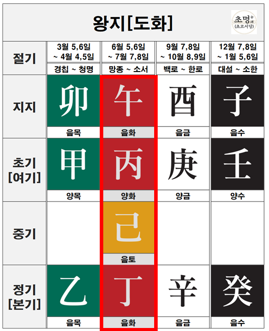 오화만 중기에 기토(己)가 있는 이유에 대해서는, 어떤 고서에서도 자세히 설명하고 있지 않습니다.