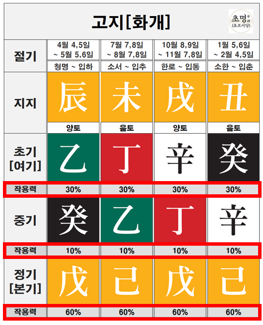 덧붙여, 고지(庫支)는 한자로 창고의 기운을 품은 간지라는 뜻입니다.