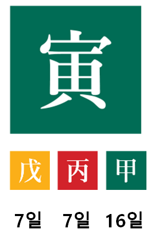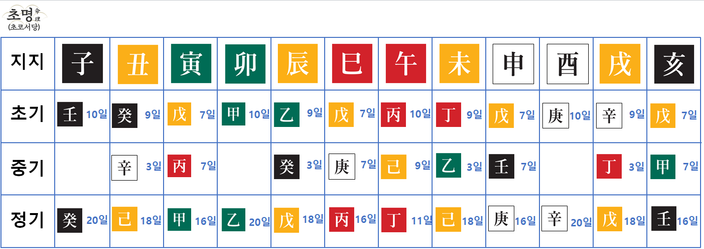 생지의 지장간은 초기가 7일, 중기는 7일, 정기는 16일에 해당된다고 보는데요.