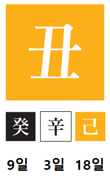 초기인 계수가 9일, 중기 신금은 3일, 정기 기토는 18일의 날짜를 배분받습니다.