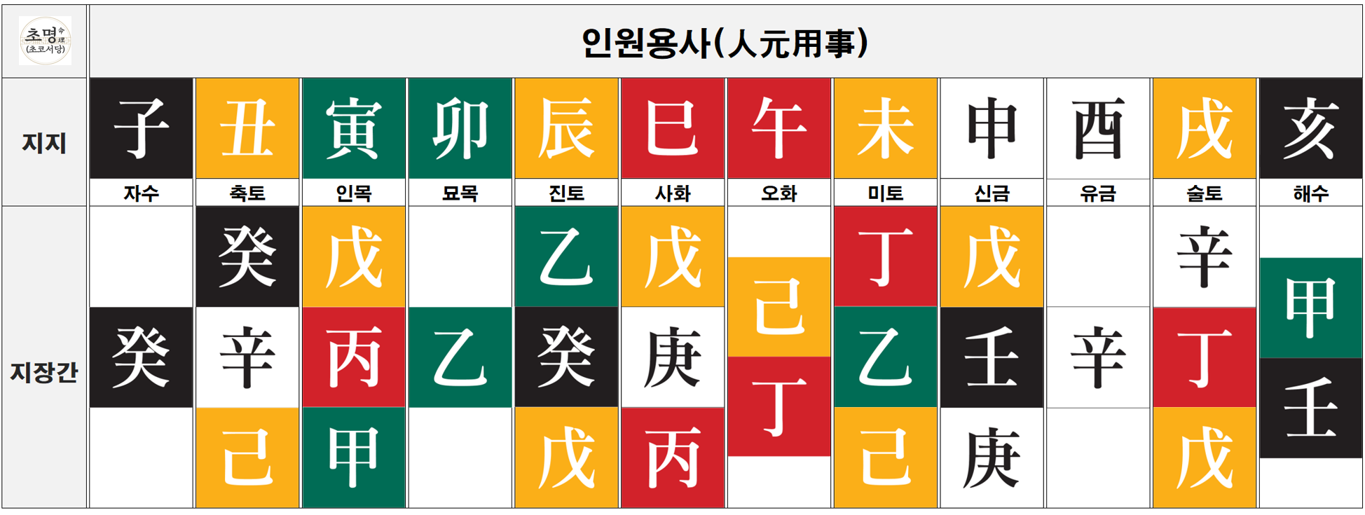 인원용사는 나머지 연지, 일지, 시지의 지장간을 파악하는 이론입니다.