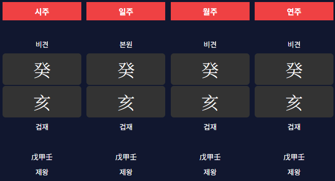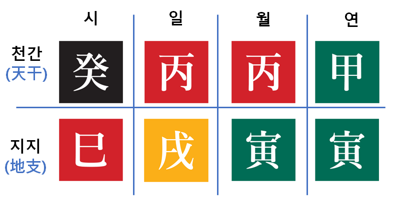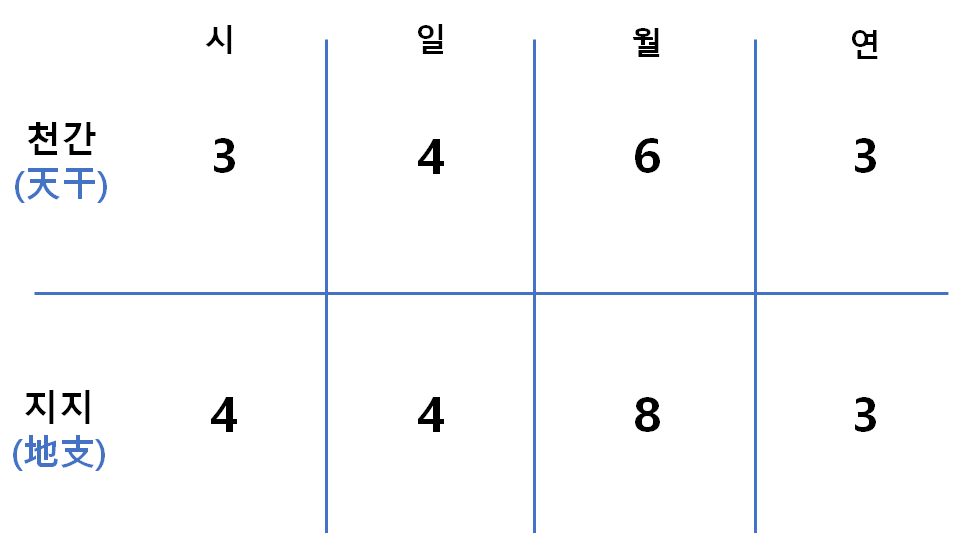 사주팔자는 말 그대로 팔자(八字), 즉 여덟개의 기운으로 이루어져있습니다.