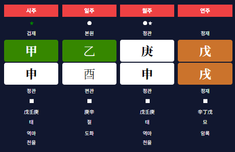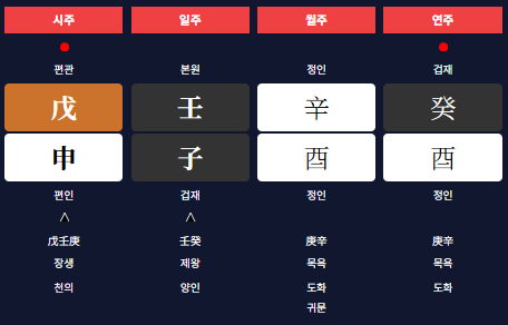 제가 여기서는 하나의 사주만 예시로 가져와보았는데요.