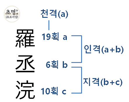 원격(元格) – 초년운: 성(姓)을 제외한 이름 두 글자의 획수를 합한 것.